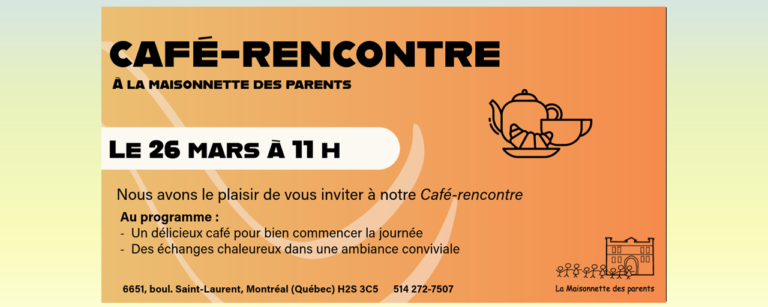 Un petit rappel que notre activité « Café-Rencontre » est de retour pour la session d’hiver…