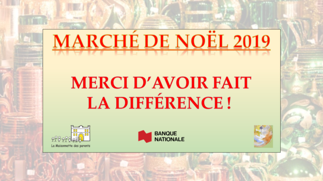 Nous avons le plaisir d’annoncer qu’entre notre Marché de Noël 2019, notre Guignolée et nos donateurs, nous avons amassé un grand total de 1101 $ ! Merci à tout le monde présent en commençant par nos bénévoles allant jusqu’à nos tout-petits usagers 🙂 Il est primordial de souligner l’appui généreux de la Banque Nationale du…