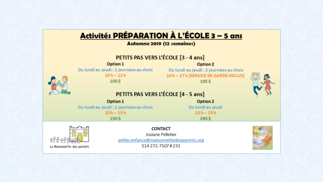 PETITS PAS VERS L’ÉCOLE 3-5 ANS – Automne 2019