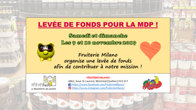 Commencez vos achats des fêtes en encourageant nos artisanes et artisans du quartier, membres usagers de La Maisonnette des parents ! Notre organisme profitera de deux jours, soit le vendredi 29 novembre et le samedi 30 novembre 2019, pour effectuer une levée de fonds afin de soutenir sa mission communautaire et sociale 🙂 Le même samedi…