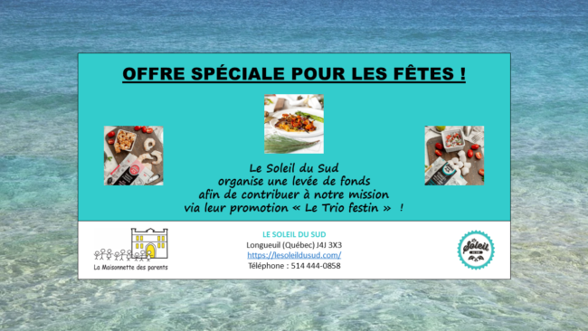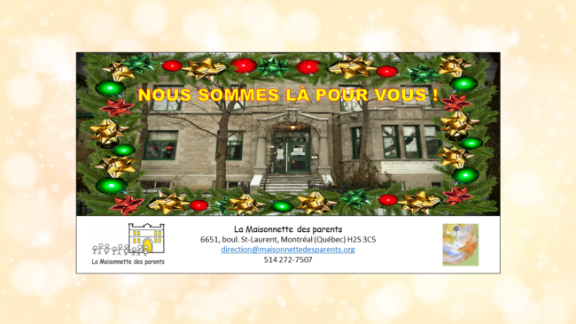À chaque année, La Maisonnette des parents souligne le temps des Fêtes en organisant un dîner de Noël pour ses familles. Étant donné la situation actuelle, nous voulions nous assurer tout de même de maintenir cette tradition, mais avec quelques ajustements bien sûr ! 🙂 Grâce à un travail collectif et créatif, le 12 décembre…