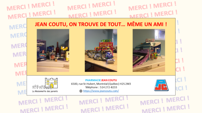 MERCI À LA PHARMACIE JEAN COUTU !