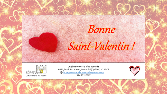 En cette belle journée ensoleillée du 14 février où nous célébrons la Fête de l’Amour, La Maisonnette des parents vous souhaite de passer du bon temps avec les personnes qui vous sont chères ! 🙂 Bonne Saint-Valentin ! 🙂