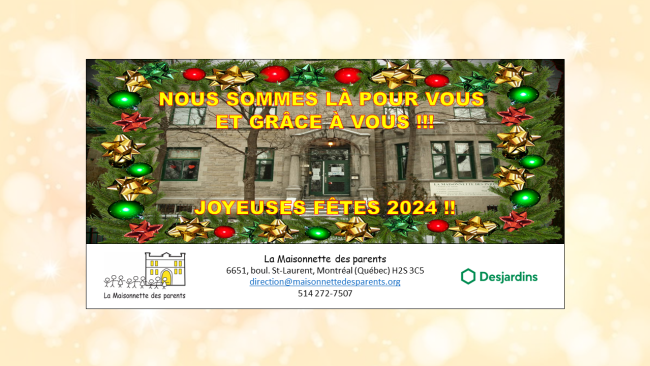 Pour une 5e année consécutive, La Maisonnette des parents a souligné le temps des Fêtes en organisant une journée festive pour ses familles ! 🙂 Samedi dernier, le 14 décembre 2024, toutes les familles prévues, et même plus, se sont présentées et notre tradition des Fêtes fut un franc succès !! 🙂 Encore une fois,…