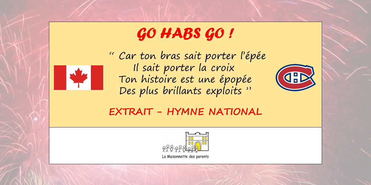 En cette journée folklorique, et pour nos Glorieux qui jouent demain soir à Montréal, voici quelques paroles de l’hymne national du Canada !