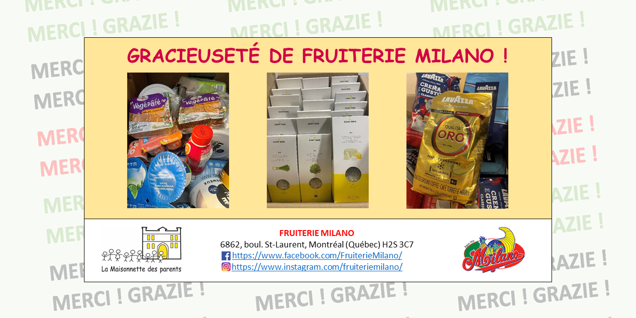 Au nom de La Maisonnette des parents et nos familles, GRAZIE !