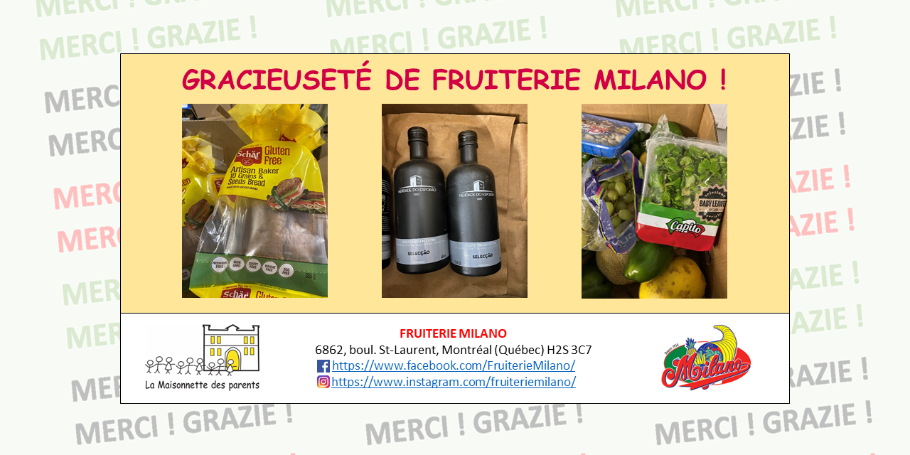 Au nom de La Maisonnette des parents et nos familles, GRAZIE !