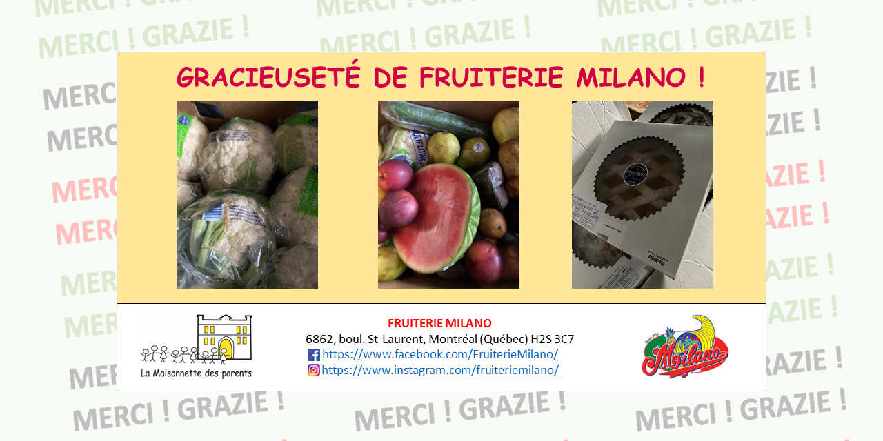 Au nom de La Maisonnette des parents et nos familles, GRAZIE !