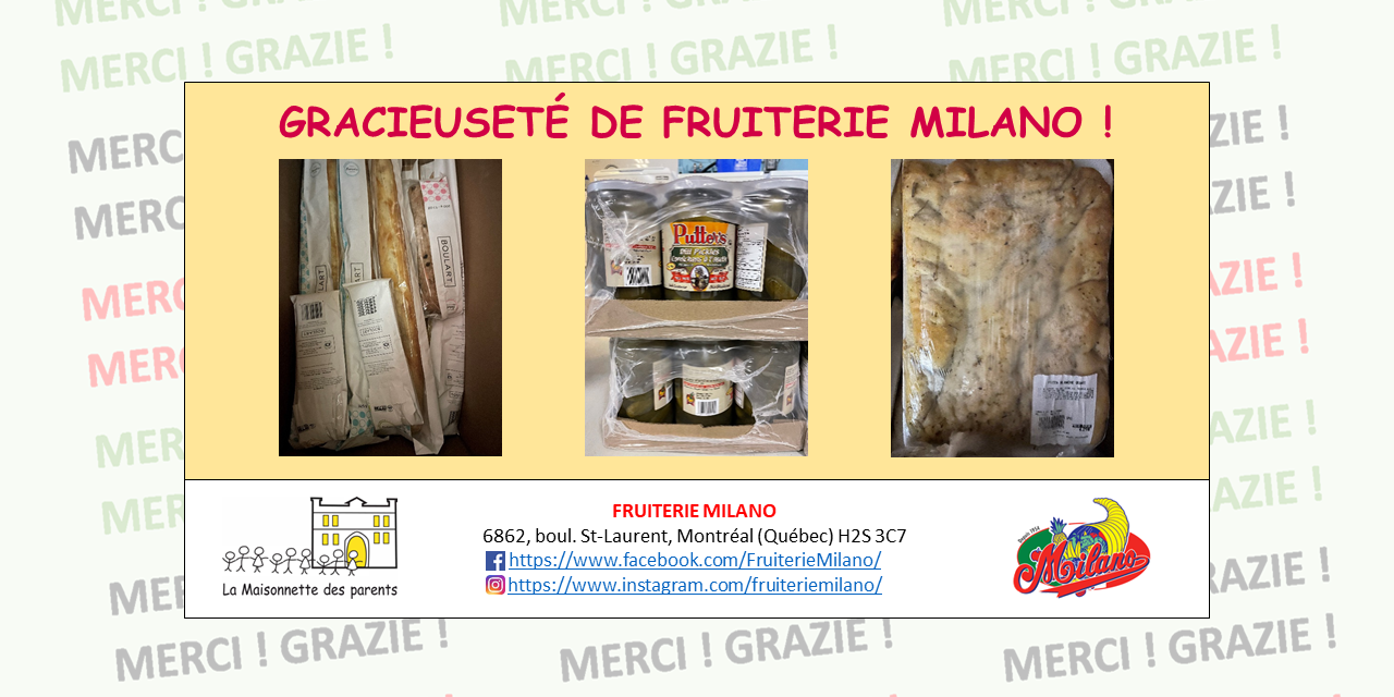 Au nom de La Maisonnette des parents et nos familles, GRAZIE !