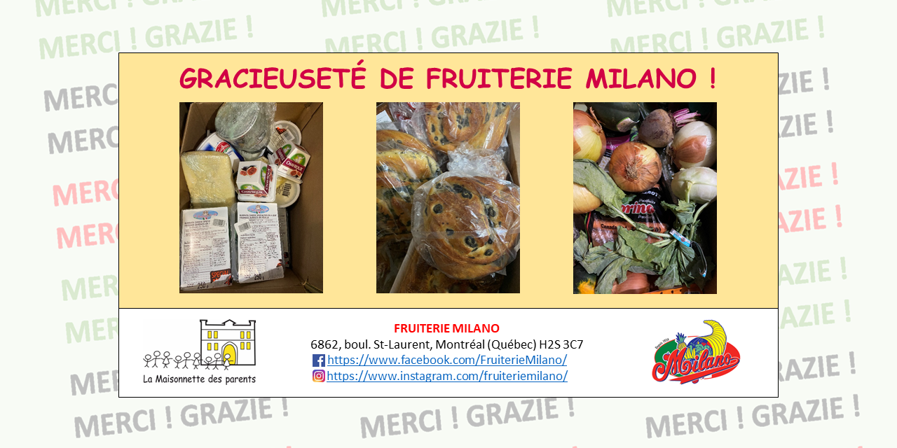 Au nom de La Maisonnette des parents et nos familles, GRAZIE !