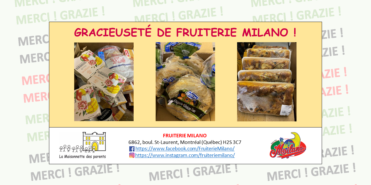 Au nom de La Maisonnette des parents et nos familles, GRAZIE !