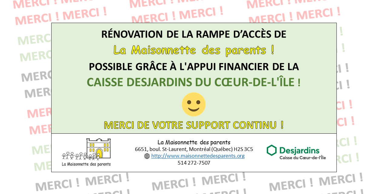 Nous tenons à remercier sincèrement la Caisse du Cœur-de-l’Île de cette initiative et de leur implication continue auprès de La Maisonnette des parents. 🙂