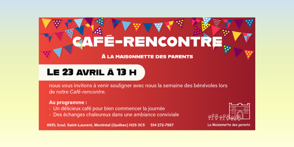 CAFÉ-RENCONTRE À LA MDP – Jeudi 23 avril 2026 – ÉDITION SEMAINE DES BÉNÉVOLES
