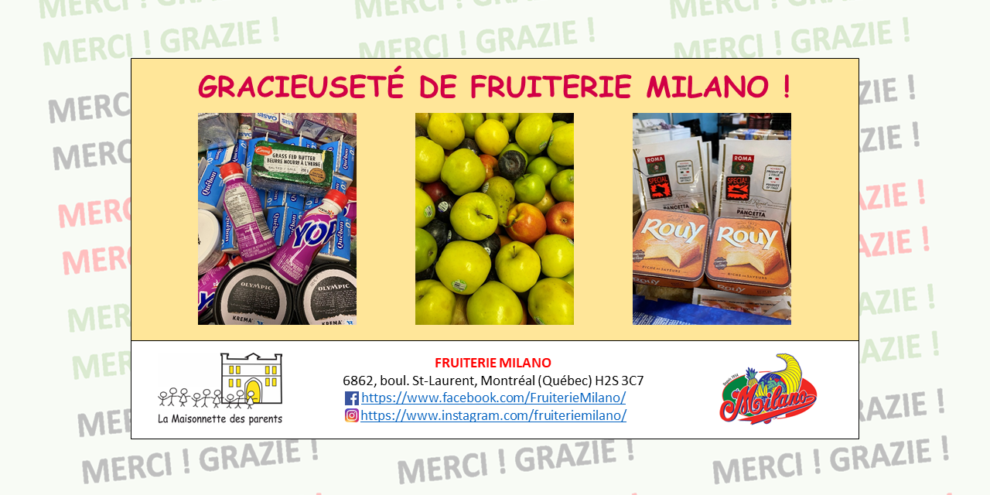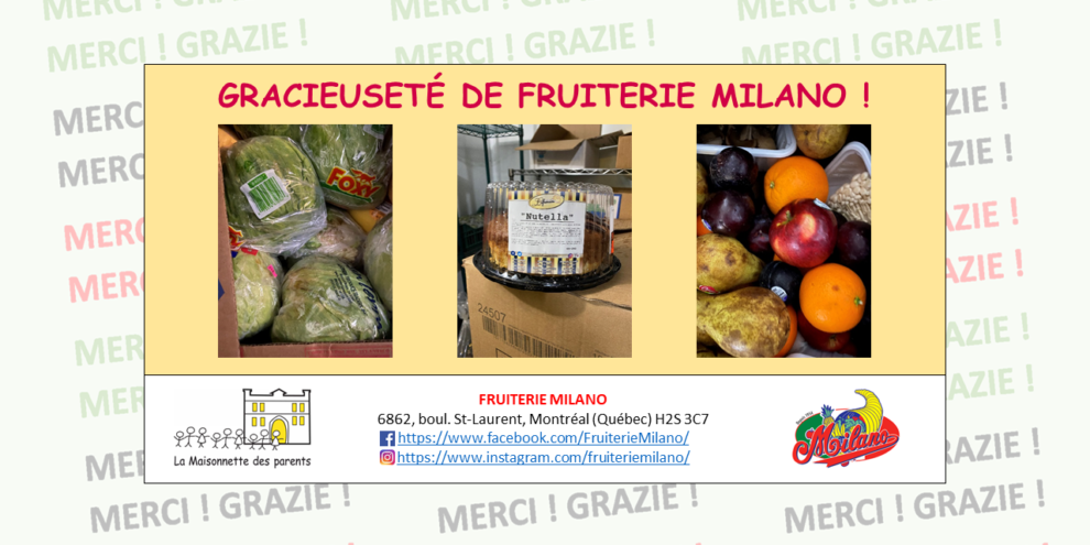MERCI À FRUITERIE MILANO !