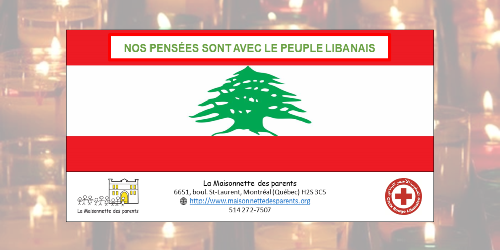 La Maisonnette des parents tient à exprimer ses plus sincères sympathies envers la communauté libanaise dans le monde entier. Nos pensées et nos prières vous accompagnent à travers la tragédie d’hier survenue à Beyrouth, capitale du Liban. Nous souhaitons de tout cœur que le Liban et son peuple surmontent collectivement cette douloureuse épreuve et sommes…