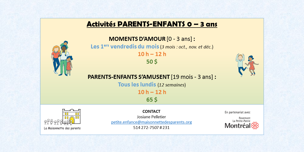 Profitez de nos activités parents-enfants pour vos tous petits 🙂