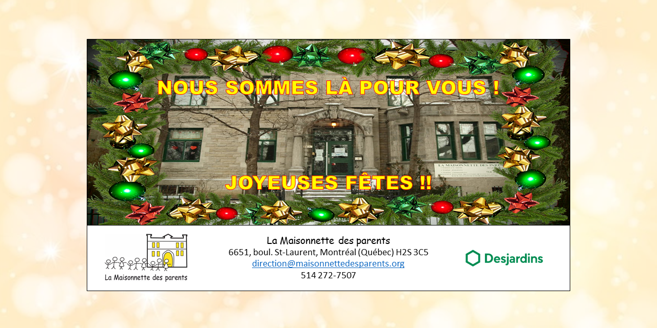 Pour une 2e année consécutive, La Maisonnette des parents a souligné le temps des Fêtes en organisant une journée festive pour ses familles ! 🙂 Nous voulions nous assurer de maintenir notre tradition des Fêtes, et ce, malgré la situation actuelle, mais avec quelques ajustements bien sûr !
